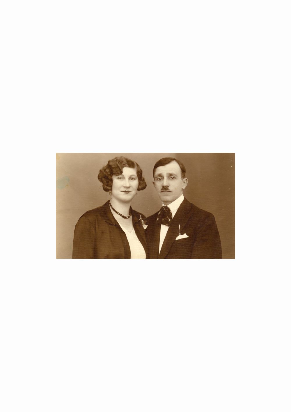 Fotografie sepia reprezentandu-l pe Dumitru Dan cu sotia Adelina (fosta Negulescu) la Braila. Dimensiuni: 13,2 x 8,2 cm. Stare de conservare: buna, hartie fotografica usor ingalbenita. Material/tehnica: hartie fotografica, fotografiere, alb-negru (tenta galbuie), mss, tus negru, stanta tus viole. Atelier foto: ,,Foto - Regal Braila.